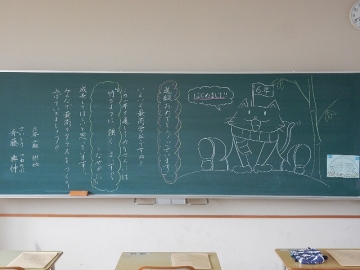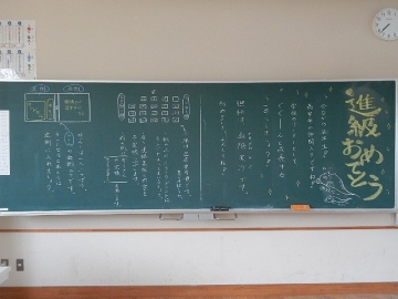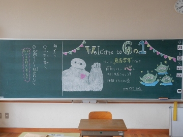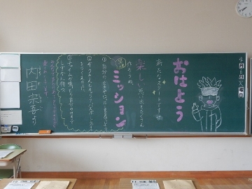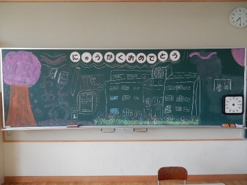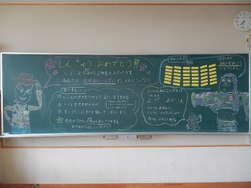 始業式・入学式の前日(4月5日)に撮った各学級の黒板を紹介します。それぞれの学級担任が、新学期の準備に追われながら、本年度の学級開きに向けて板書したものです。