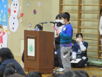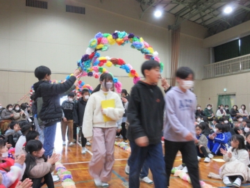 今日は、全校のみんなで集まる最後の日、「6年生を送る会」を行いました。