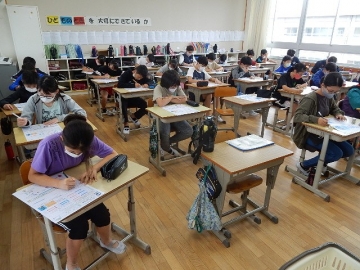 単元「水よう液の性質」のテスト問題に取り組んでいました。6年の子どもたちも、通常の学校生活に戻っています。