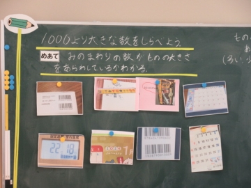 めあて「みのまわりの数が、ものの大きさを あらわしているか わかる。」