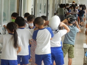 避難訓練を行いました。全ての子どもたちが一斉に非難する形式の訓練は、本年度になって初めての実施です。(1学期の訓練は、新型コロナウイルス感染症の拡大を防ぐため、学級毎に実施する形式に変更して実施しました。)久しぶりでしたが、ほとんどの子どもたちは「お・は・し・も」をきちんと覚えていました。
