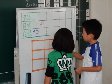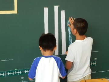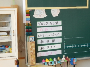 一人ずつめあてをきめたら、ローテーションカード・数直線・棒グラフの役割をきめています。