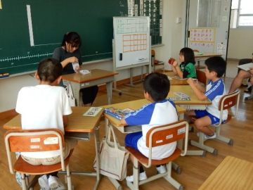 今日の授業の流れを伝えます。この時間どんなことをするのか「みとおし」をたてることは、子どもたちが落ち着いて学習に集中するためにかかせません。