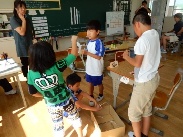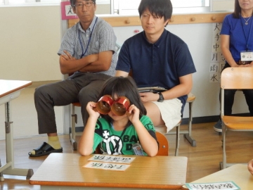 これは、集中するためのグッズ。「よくみえるめがね」です。コップをふたつくっつけてめがねにしてあります。