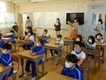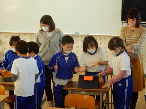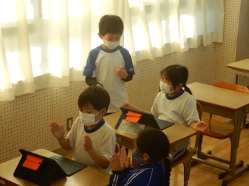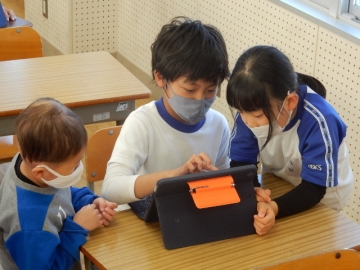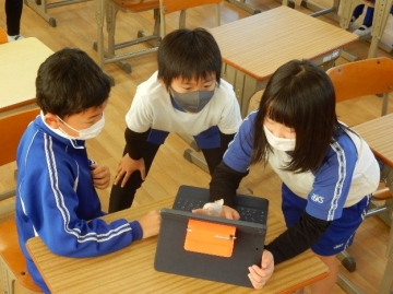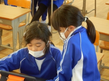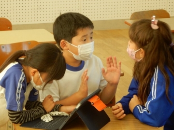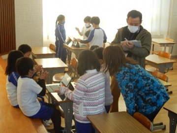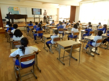 本校は、教員の授業力がさらに向上するよう、授業を互いに提案し合って協議する校内研修に取り組んでいます。今日は、2年1組の音楽を担当している小原教諭が授業を提案しました。子どもたちがグループ毎に作ったリズムを正しく打ったり重ねたりする内容で、タブレット型パソコンの活用や「学び合い」の授業づくりの推進につながる提案でした。
