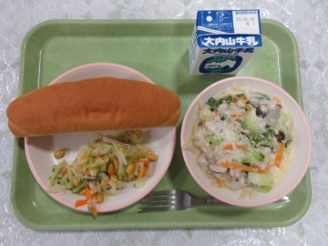 ・パン ・ツナのクリームスパゲッティ ・だいずサラダ ・牛乳