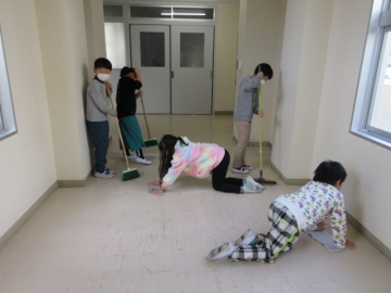 きょうの2げんめは、「全校おおそうじ」。自分のしごとがおわると、「ほかに することはありませんか?」「もっと そうじするところはありませんか?」と 先生に聞きに行き、どんどんきれいにしてくれました。