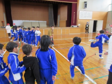 今日の授業参観は、「なわとび集会」です。