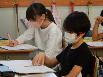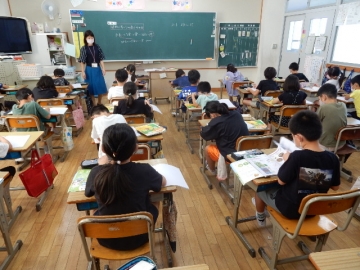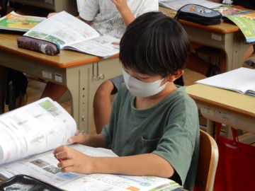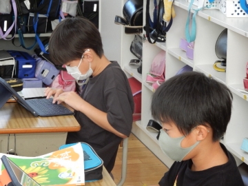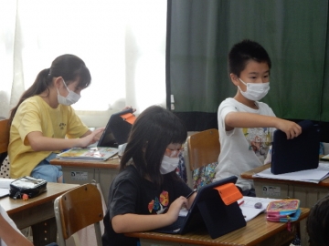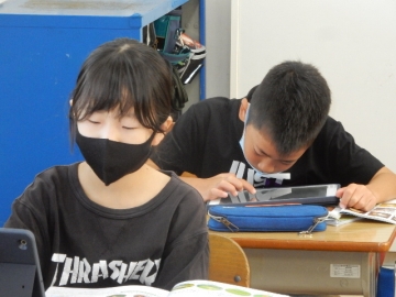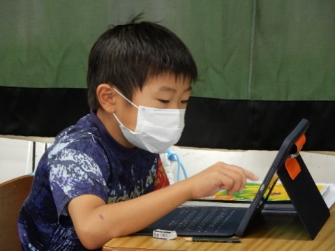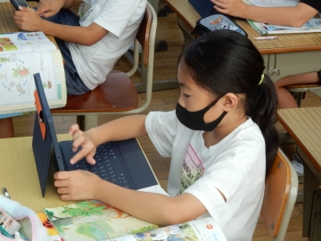 3年の子どもたちが、タブレット型パソコンを使って理科の問題づくりに挑戦していました。範囲は、自らが学習した植物についてと昆虫についてです。ある子は「テストは受けるもんや。作るのはむずい。」とブツブツ言いながら作っていました。