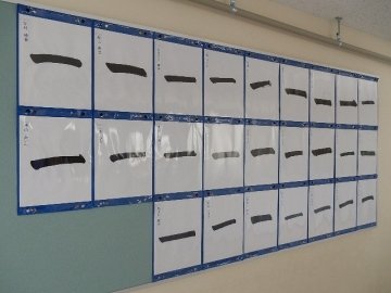 3年教室前を通ったら、毛筆「一」が掲示されていました。毛筆の書写は3年から始まりますので、文字通りに「千里の道も“一”歩から」です。
