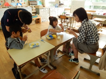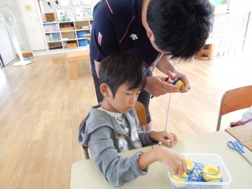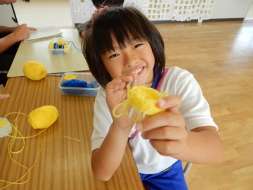 学習rでは、毎年バザーに出す製品を作成しています。昨年度は、ミニタワシを作って販売。大人気で側溝完売。今年は、もっとミニで。ストラップにできる大きさで制作中。楽しみにしていてください。
