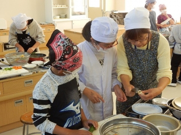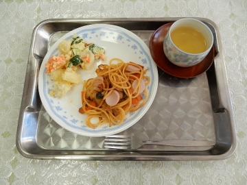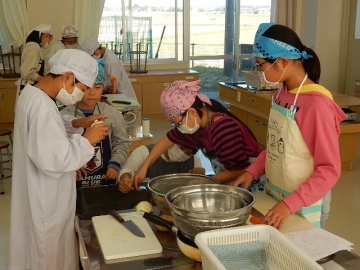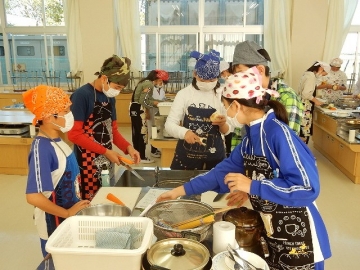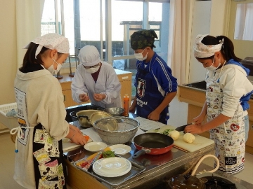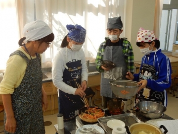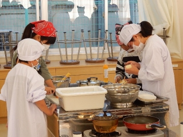 6年2組の子どもたちが調理実習を行っていました。メニューは、ナポリタンとポテトサラダです。班毎に協力して楽しそうに作っていました。