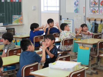 じぶんの「ゆび」を つかって、「ゆびの はば」いくつぶんか しらべます。