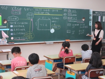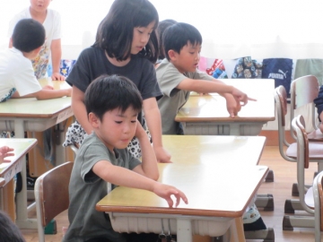 めあて「てえぷを つかわずに、ながさを くらべることが できる。」