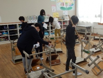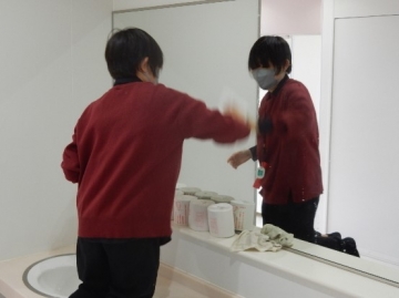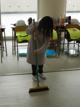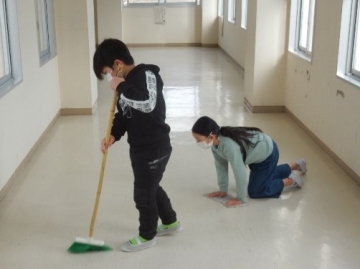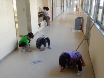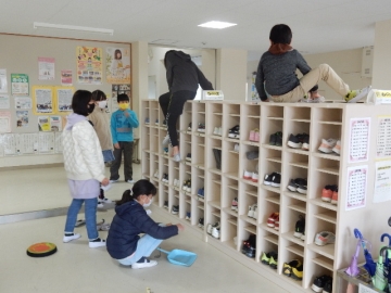 教室内のロッカーや児童玄関の靴箱などの隅に溜まっている汚れもきれいに掃いたり拭いたりしていました。