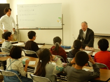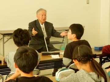 全盲で教誨師をされている内藤さん。3年生は、地域で活躍されている内藤さんを学校へお招きし、出会い学習をしました。様々な困難を乗り越え強く生きていくことを教えていただきました。