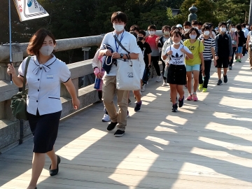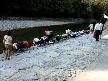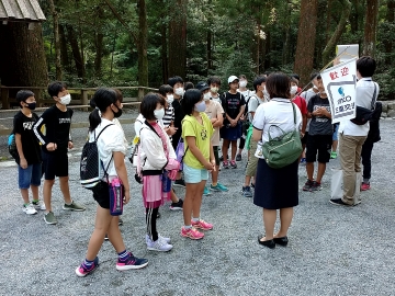伊勢神宮に着きました。今日の最後の訪問地です。伊勢神宮の見学が終わったら、隣接するおはらい町に行って、1日目の買い物タイムです。