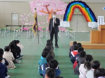 修了式と離任式を行いました。修了式は、校長が、コロナ禍によって大きく変わった本年度の学校生活を振り返りながら、来年度の成長を願うなどの内容を講話しました。離任式は、本年度末をもって退職したり転出したりする教職員を紹介し、それぞれから子どもたちに向けたメッセージなどを話してもらいました。いずれも本校の子どもたちを愛おしく思う内容で、聴いている私もグッとくるものがありました。