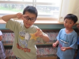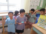 図書委員さんが、おみやげを配ってくれます。