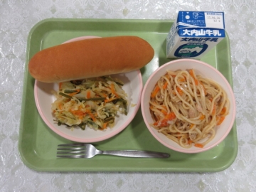 ・パン ・くきわかめサラダ ・わふうスパゲッティ ・牛乳