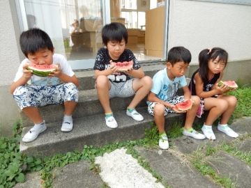 自分たちで育てたすいかをおいしくいただきました。とても甘かったです。