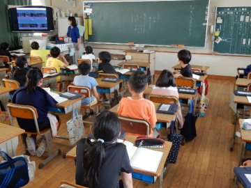 単元「ちいちゃんのかげおくり」に入りました。太平洋戦争が教材の時代背景です。「コンピューターゲームの戦争なら、いっぱい知っとるよ。」などとにこやかに言っていた子も、授業者が説明する太平洋戦争のあらましなどを聞いて「それはあかんやろ。」などとつぶやいていました。