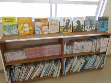 ろうかには、たくさん たのしいほんが ならんでいます。