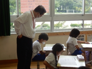 本校は、県教育委員会の事業を受け、定期的に学力向上アドバイザーの方に来ていただいて、教員の授業力が向上するよう助言していただいています。今日は、前回に観ていただくことができなかった学級の授業を参観していただいて、気付かれたことなどをそれぞれの授業者にアドバイスしていただく予定です。