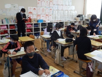 本校は、県教育委員会の事業を受け、定期的に学力向上アドバイザーの方に来ていただいて、教員の授業力が向上するよう助言していただいています。今日は、市教育委員会の指導主事もアドバイザーの訪問に合わせて来訪されましたので、お二人によっての参観でした。