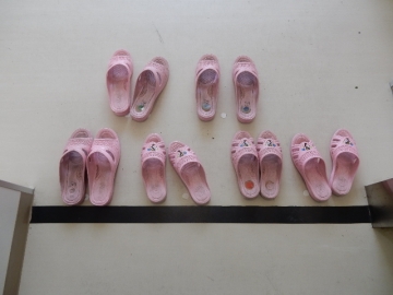 4限目に校内を見回っていた時に見たトイレのスリッバです。誰かがそろえ直した感じでもなく、次の人が使いやすい向きに並んでいました。手前味噌ですが、これもかんべっ子の一コマです。