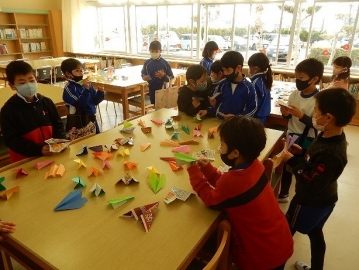図書館まつりを行いました。図書委員会の主催です。本年度は、コロナ禍の状況であることを考慮し、子どもたちが密集する状況になりにくいであろう「読書に取り組む期間を数日に設定した“図書すごろく”」を催しました。子どもたちは、図書ボランティアの方々が作ってくださった景品(折り紙の紙飛行機など)をもらって喜んでいました。