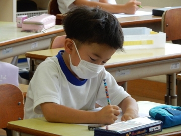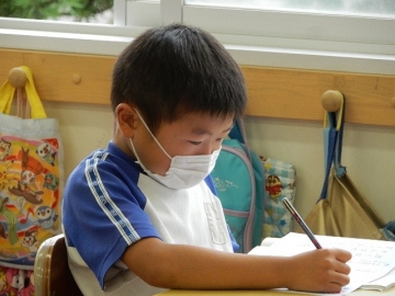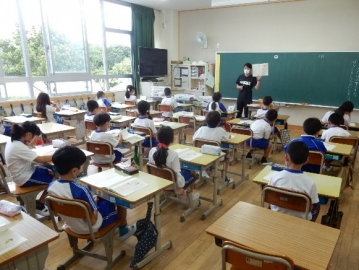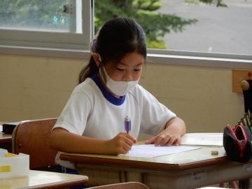 丸(。)と点(、)、鉤括弧(「」)の使い方を復習していました。子どもたちはよく分かっていて、授業者の問いに対してスラスラと応答したり、復習プリントに書き込んだりしていました。