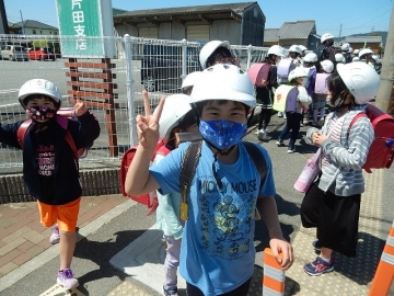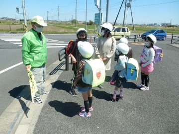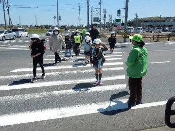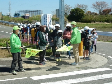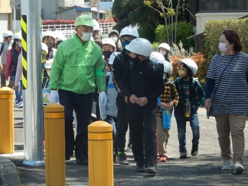 今日から1年の子どもたちの歩いて帰る毎日が始まったことを受け、地区別の集団下校を行いました。神戸地区児童見守り隊の方々も、交通量の多い交差点などに立ったり、一緒に歩いたりしてくださっていました。