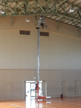 体育館フロア照明の電球交換