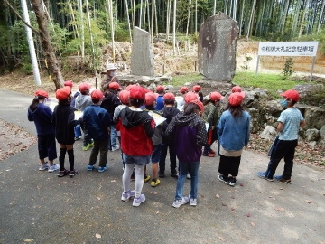 1学期もお世話になった黒川さんに案内していただいて、3年の子どもたちが神戸地区の史跡などを巡ってきました。巡った場所は、おこし古墳と鎌切1号墳、神戸乃神社に残っている戦争時の弾痕などです。子どもたちは、内容の濃さに圧倒されながらしっかりとメモを取っていました。