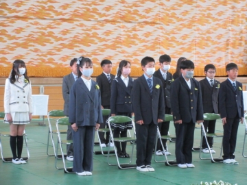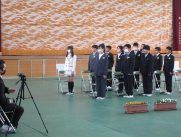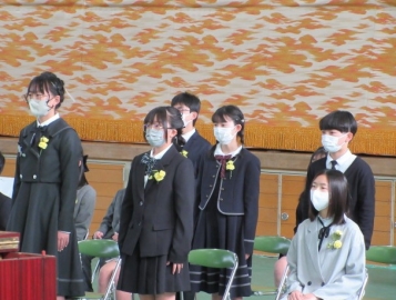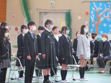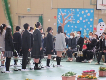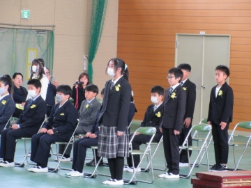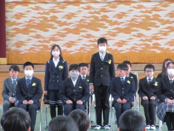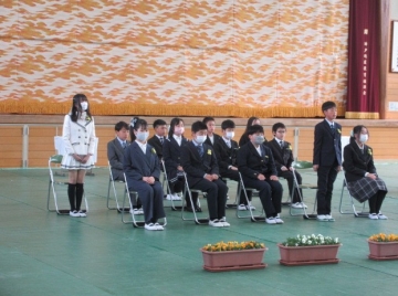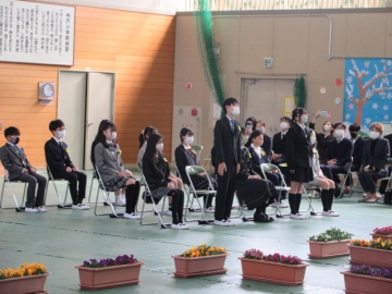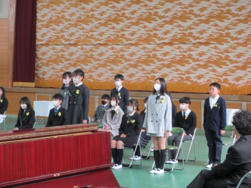 卒業生と5年生による、「わかれのことば」。