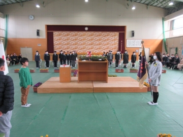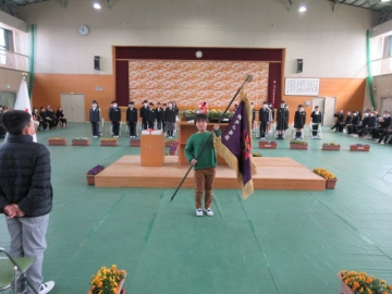 校旗の引継ぎ。