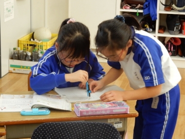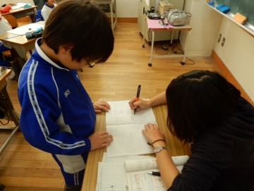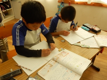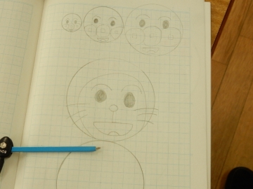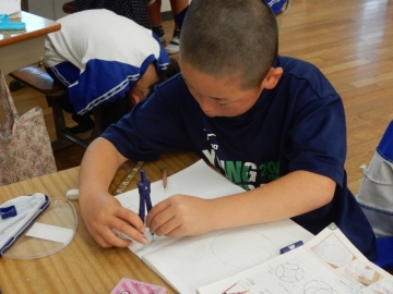 コンパスの使い方を学習していました。コンパスを使って模様を描いていました。