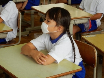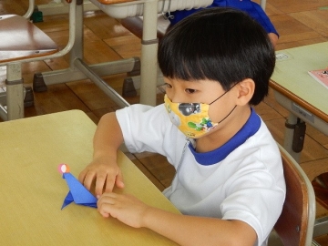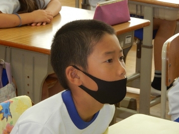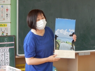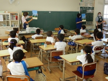 本年度になって2回目のお話し会でした。今回も、三密の状況を案じ、中休みの1年教室(2階の音楽室です。)と昼休みの2年教室に分けて行いました。お土産は「折り紙のあしか」でした。