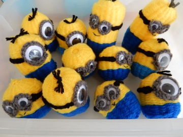 かんべっ子広場で、自作のミニオン似のミニミニたわしを売ります。お母さん方にも売りたいし、先生たちにも売りたいが、時間がなくてそんなに作れません。どうしようかと考え中。