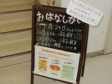 おはなし給食の日です。中休みに、子どもたちが絵本「にぎやかなおでん」を学校図書館司書に読んでもらいました。栄養教諭がおでんについてのミニ知識も話したり、図書ボランティアの方々が絵本の内容から考えたクイズも出したりして、楽しい時間になりました。昼休みに2回目を行う予定です。