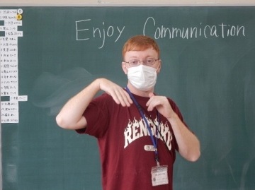 新型コロナウイルス感染症の流行が収まらないため、未だに新しいALTが市教育委員会に着任していないそうです。取りあえず、4月と5月は、他の津市立小中学校を担当しているALTのマシュー・ヘグストロムさんに来てもらって、外国語の授業などをアシスタントしてもらうことができました。初日から全時限の授業に入ってもらっています。