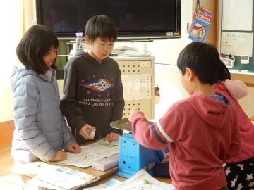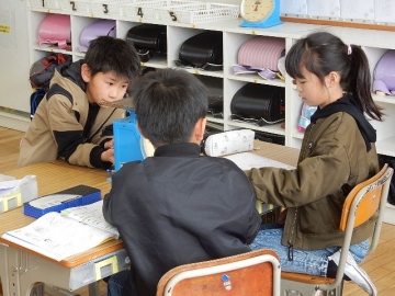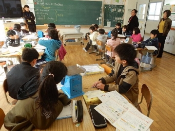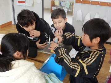 ものの体積と重さを学習していました。本時の主題は「同じ体積のものは、違う種類であっても、同じ重さか。」です。子どもたちの活動を大切にしながら進む、落ち着いた雰囲気の授業でした。