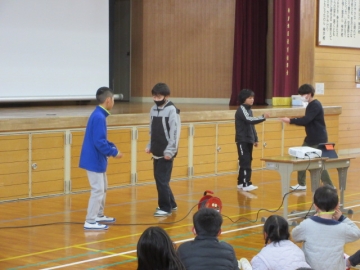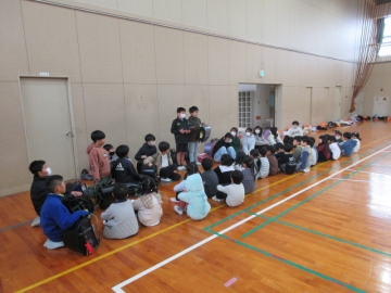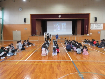 この動画は、5年生が1年生の教室へ行き、「朝の学習」「授業中」「給食」などのシーンを撮影したものです。