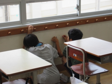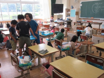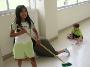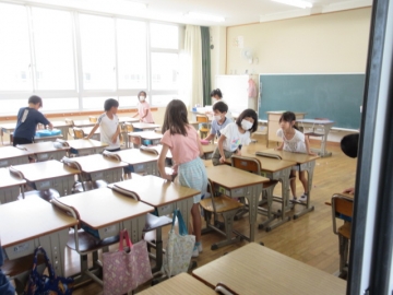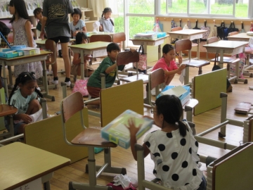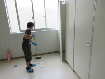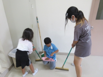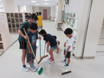 1・2年生のそうじ場所は、6年生がお手伝いに来てくれます。