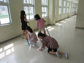 1学期の汚れを、みんなできれいに そうじしました。