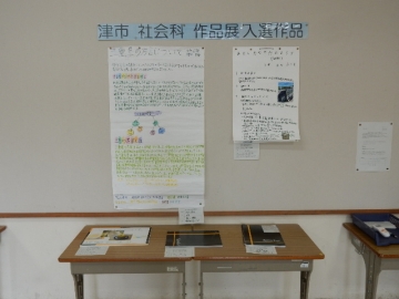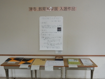 「津市教育科学展」「津市社会科展」に、神戸小学校の代表として選ばれた作品が、児童昇降口正面に掲示してあります。