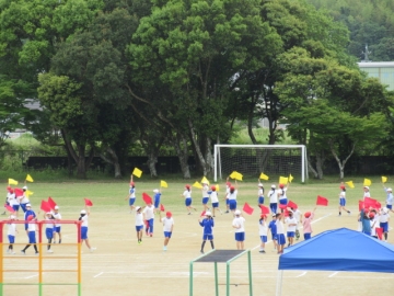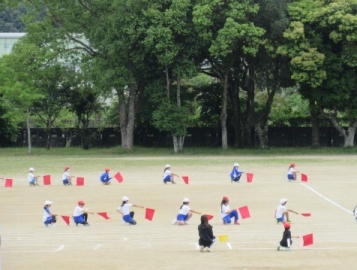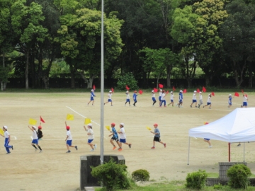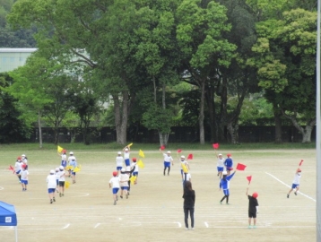 旗が風を切る「ザッ」という音もそろっていて、とてもかっこいいです。