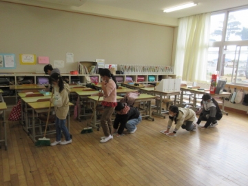 一年生も、六年生のおかげで、上手にお掃除できるようになりましたね。