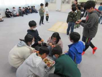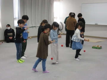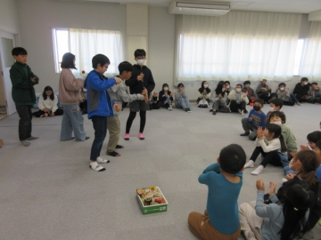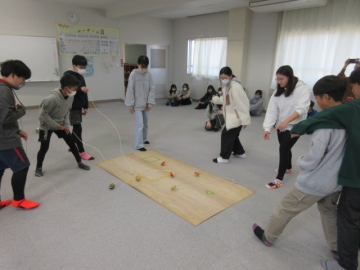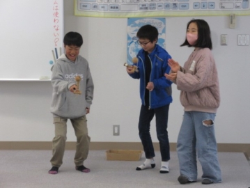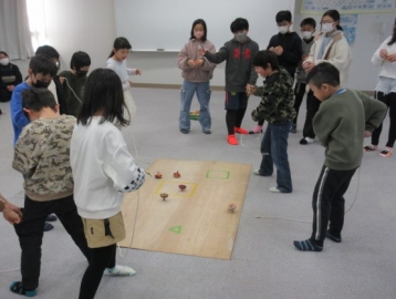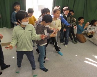 まず、1年生。「むかしあそび」の 先生に、おしえて いただきましたね。